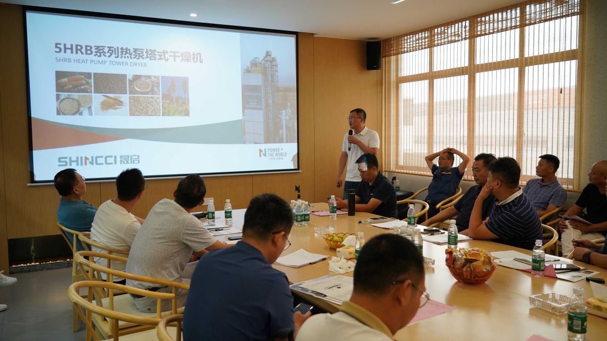 当天上午,晟启除了向大家展示间壁式颗粒流干燥技术外,还为大家带来了已成功运行的5HRB系列热泵塔式干燥机,晟启集团华北区负责人何建孟先生就落地河北张家口泥河湾的我国首套除湿热泵塔式干燥机,为现场客商和专家详细解说了塔式干燥机工作原理和实际运行情况。塔式干燥机采用密闭循环,余热余温回收原理,除了高效节能、物料烘干品质高的优点,经济效益也极具优势。与传统热源干燥装置相比,热泵干燥装置的能源效率高,干燥成本下降40%左右。以日干燥玉米200吨烘干塔为例,吨粮除16%水份成本约27.13元,传统燃气烘干成本约145.4元。日节省2.37万元。