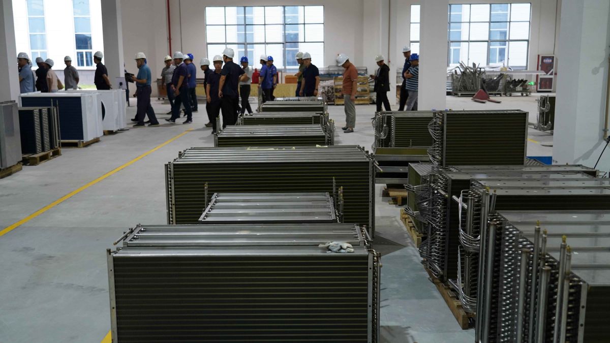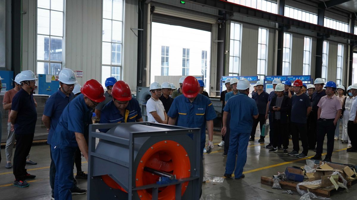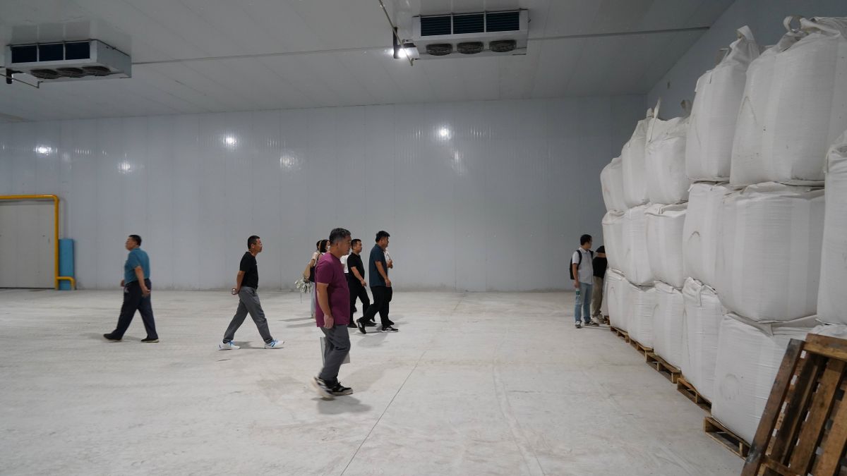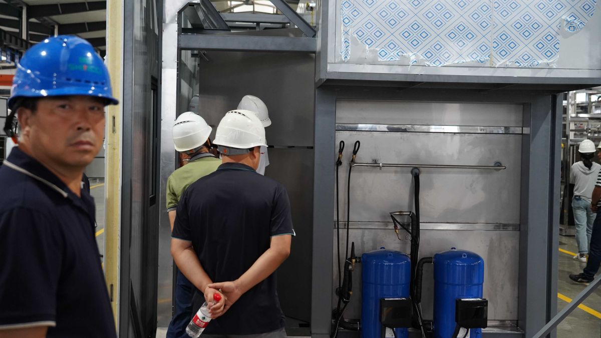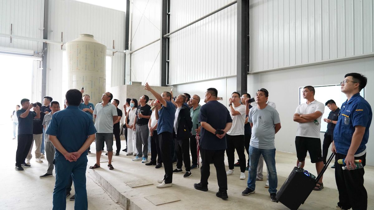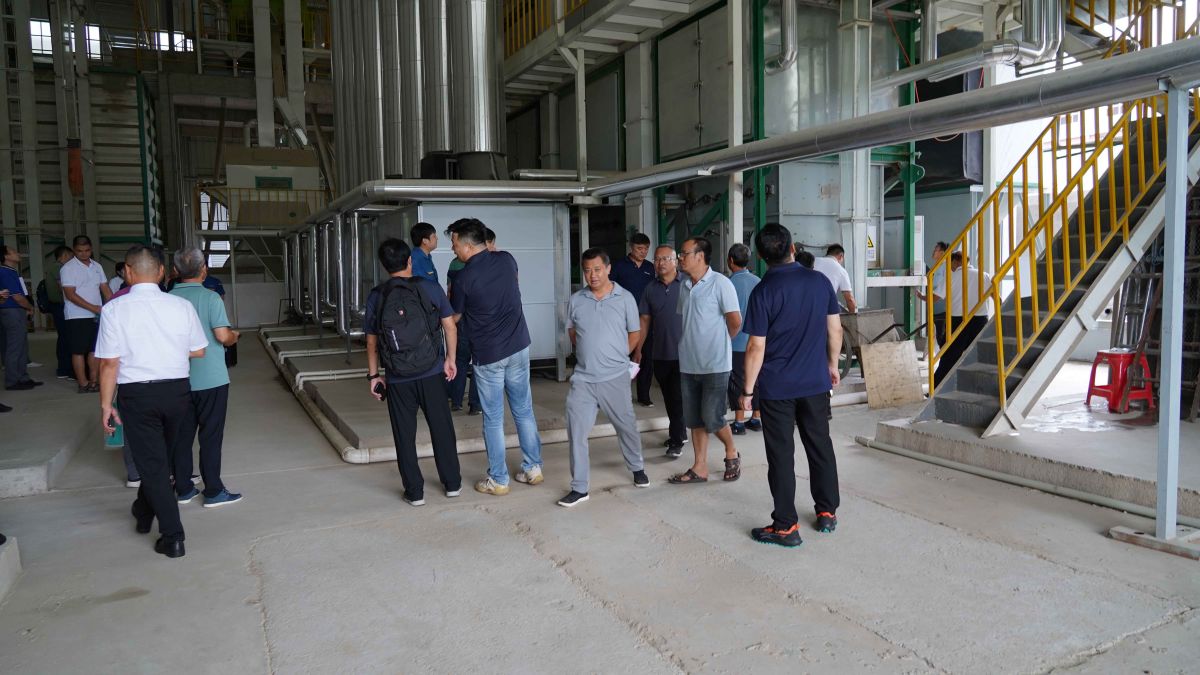 车间现场,谭吉祥先生现场解答了大家的疑问,原来该机组采用除湿热泵热回收技术,集热水载热、热风载湿及闭式循环功能于一体。热空气采用闭式循环,不向外界排放废热及粉尘,选用脉冲除尘装置处理干燥过程产生的杂质、漂浮物及粉尘,有效实现对周边环境的近零污染。因其无尘排放设计,所以大家在生产现场体会到了一反常态的清新空气。