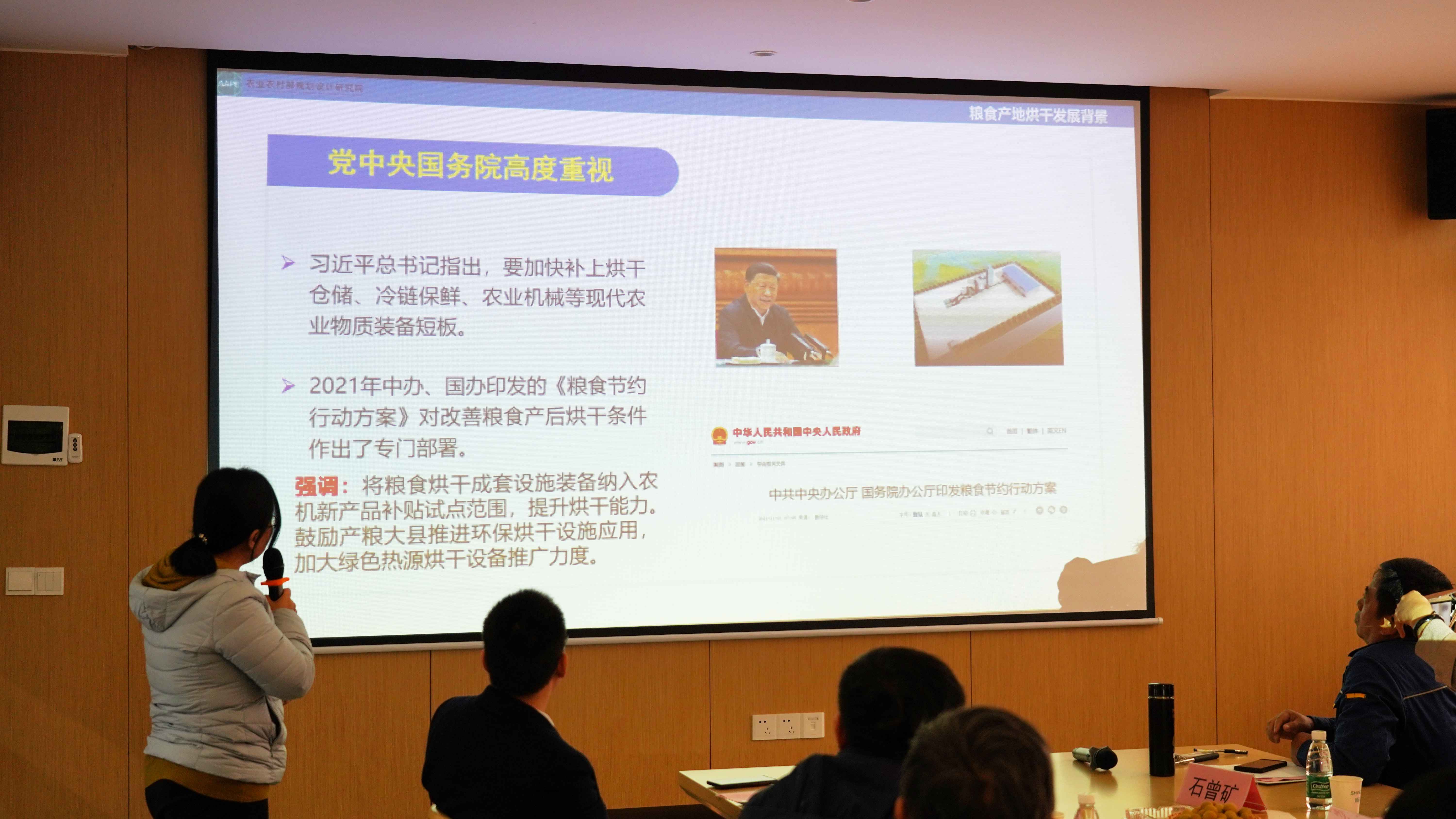 接下来,农业农村部规划设计院师建芳主任现场从发展背景与政策、烘干能力建设现状、烘干中心建设模式与规范三大方面详细介绍了我国粮食烘干产业的实际情况和未来发展前景,通过一系列的政策文件明确了国家对粮食烘干装备的重视程度和推进力度。
