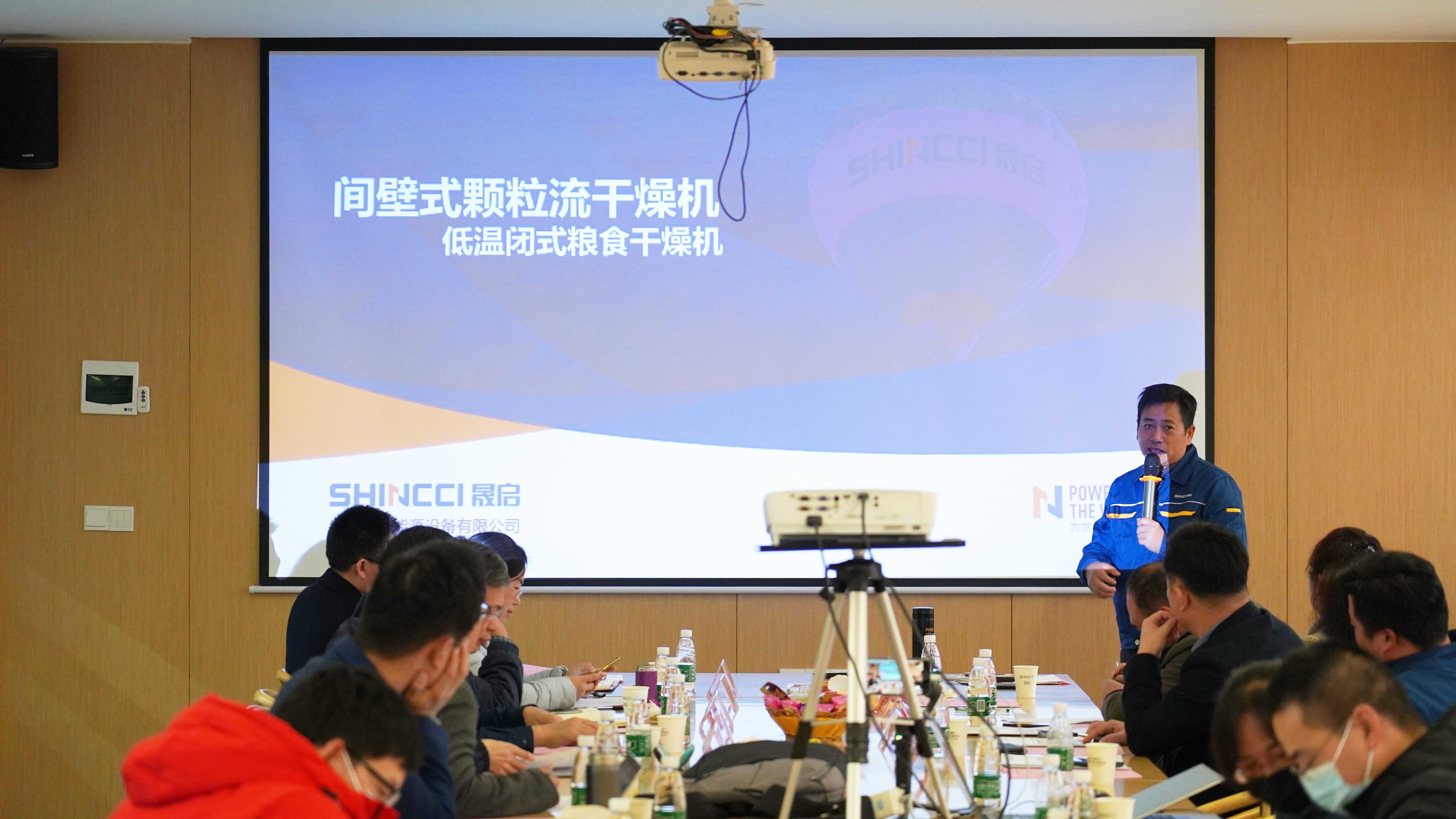 晟启集团总经理石曾矿先生、中国农业机械工业协会粮食烘干设备分会副会长(中粮工程装备无锡有限公司总经理)王猛先生到会致辞。农村农业部规划设计院、贵州农科院、新疆农科院、山东农机院、江西农业技术推广中心、中央储备嫩江直属库、各高校学院代表共同参会。