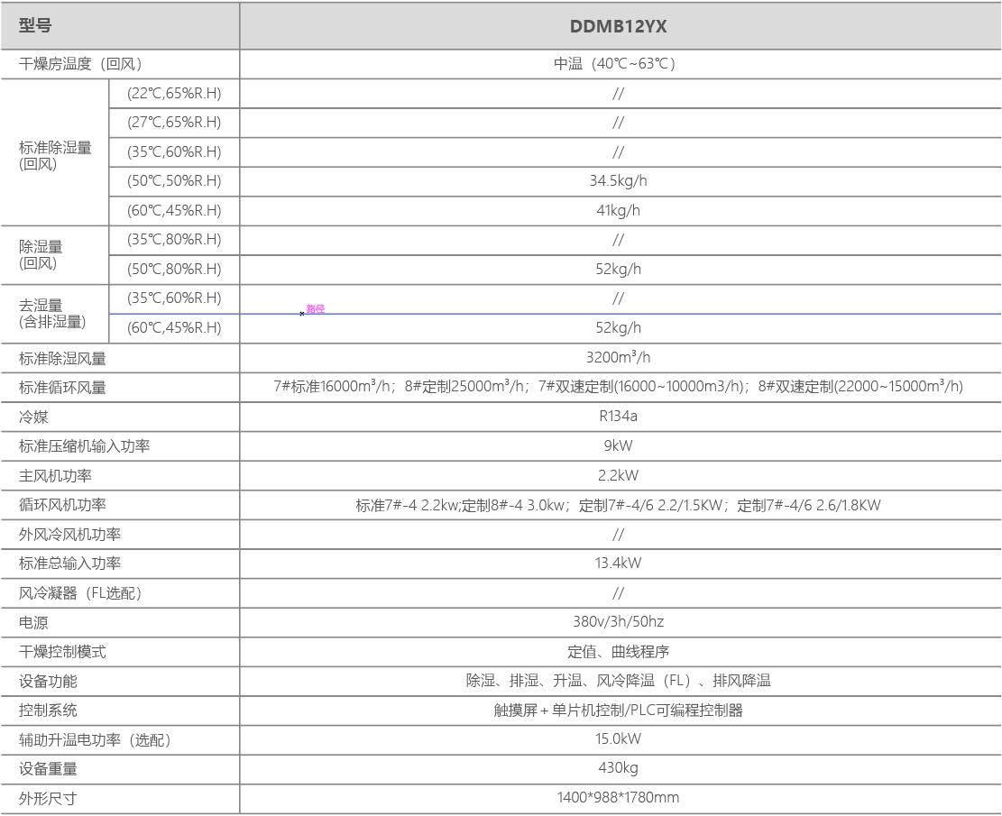 标准额定工况,去湿性能比SMER可达4.0kg.H2O/kW.h以上;